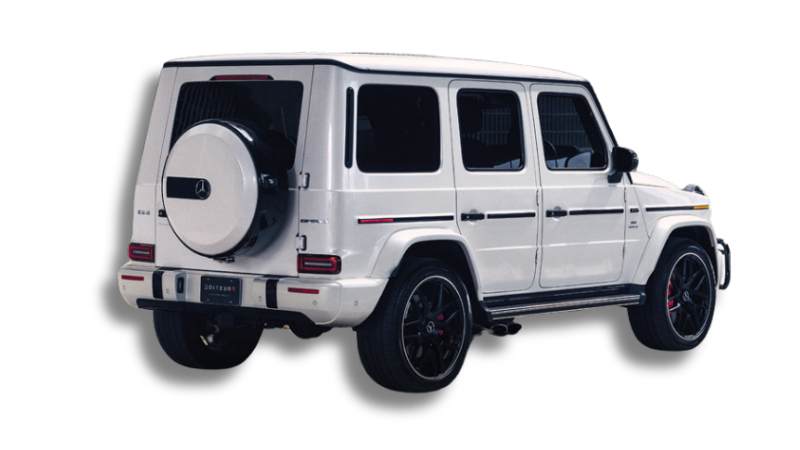 The G63 AMG is more than just an SUV—it’s a rolling statement of power and prestige. Our rental model is finished in Designo Diamond White Metallic, offering a striking contrast to its rugged shape. Exterior highlights include: